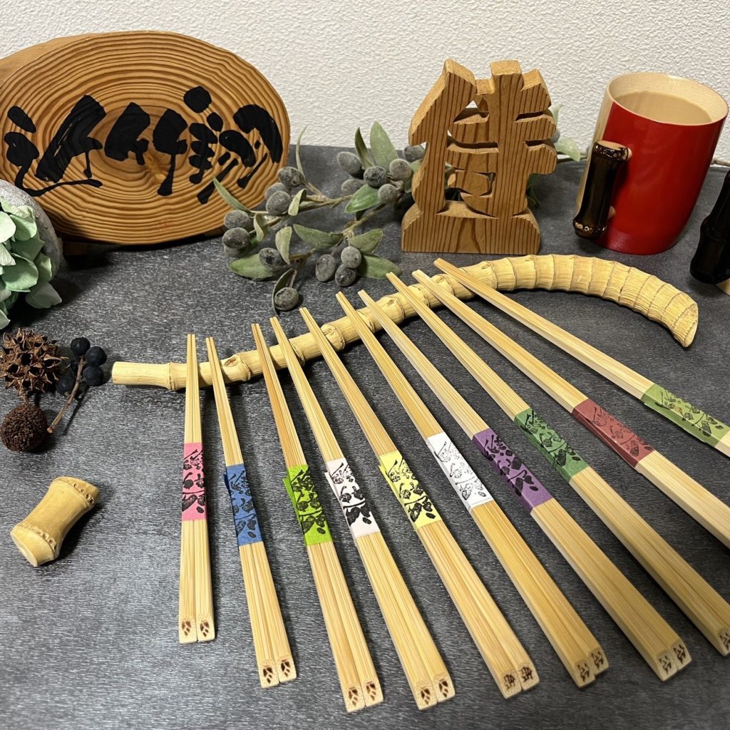 両日参加 知多半島産の竹を使用したお箸とマグカップの販売。マルシェではお箸の違いを体験出来ます。 -