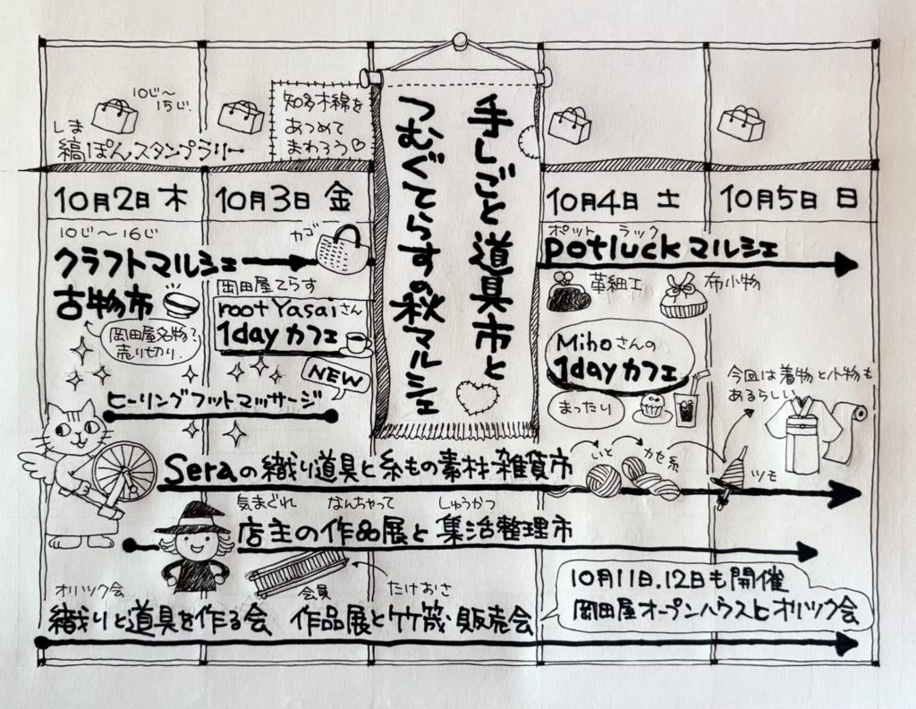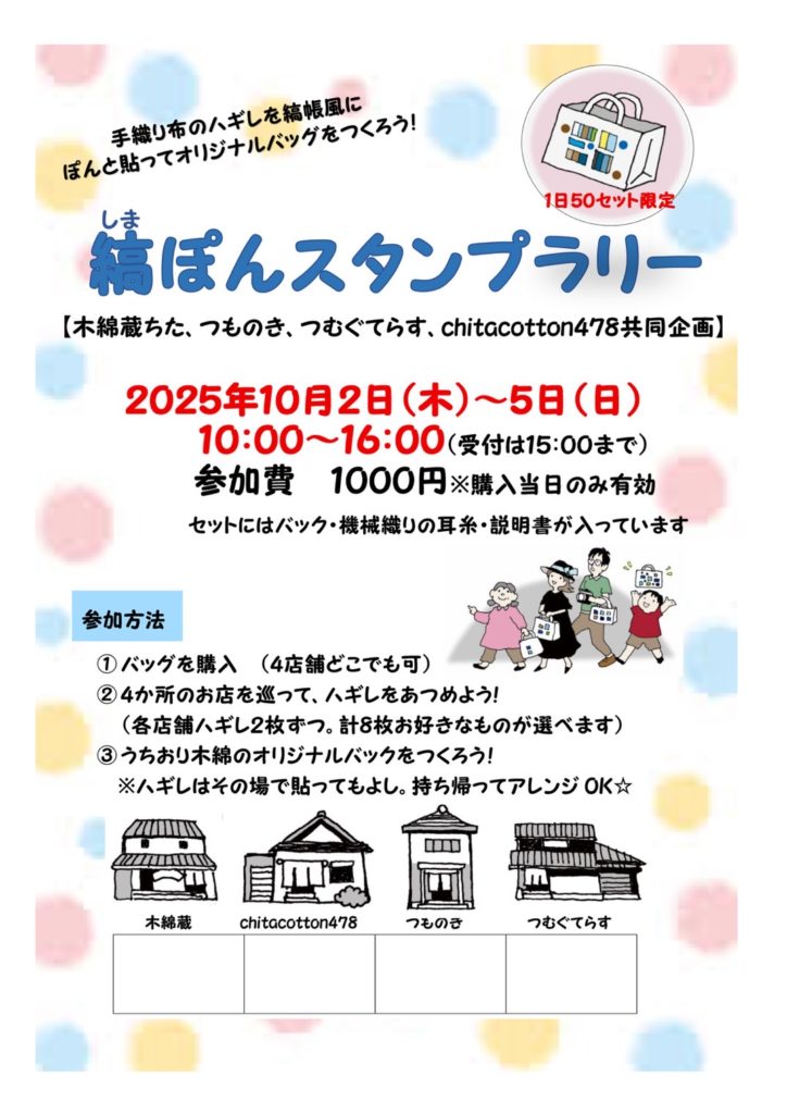 作品展期間中 岡田の上記4カ所を回って木綿の布を貼ってmy手提げ袋を作ろう!!